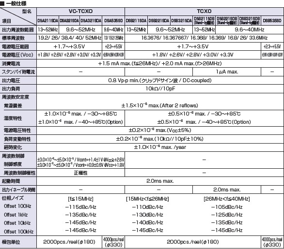 具有最適合于GPS用途的高穩(wěn)定的頻率溫度特性。 為對應低電源電壓的產(chǎn)品。(DC+1.8V ± 0.1V to +2.9V ± 0.1V 対応可能) 高度:最高0.8 mm、體積:0.0022 cm3、重量:0.008 g,超小型、輕型。 低消耗電流、表面貼片...